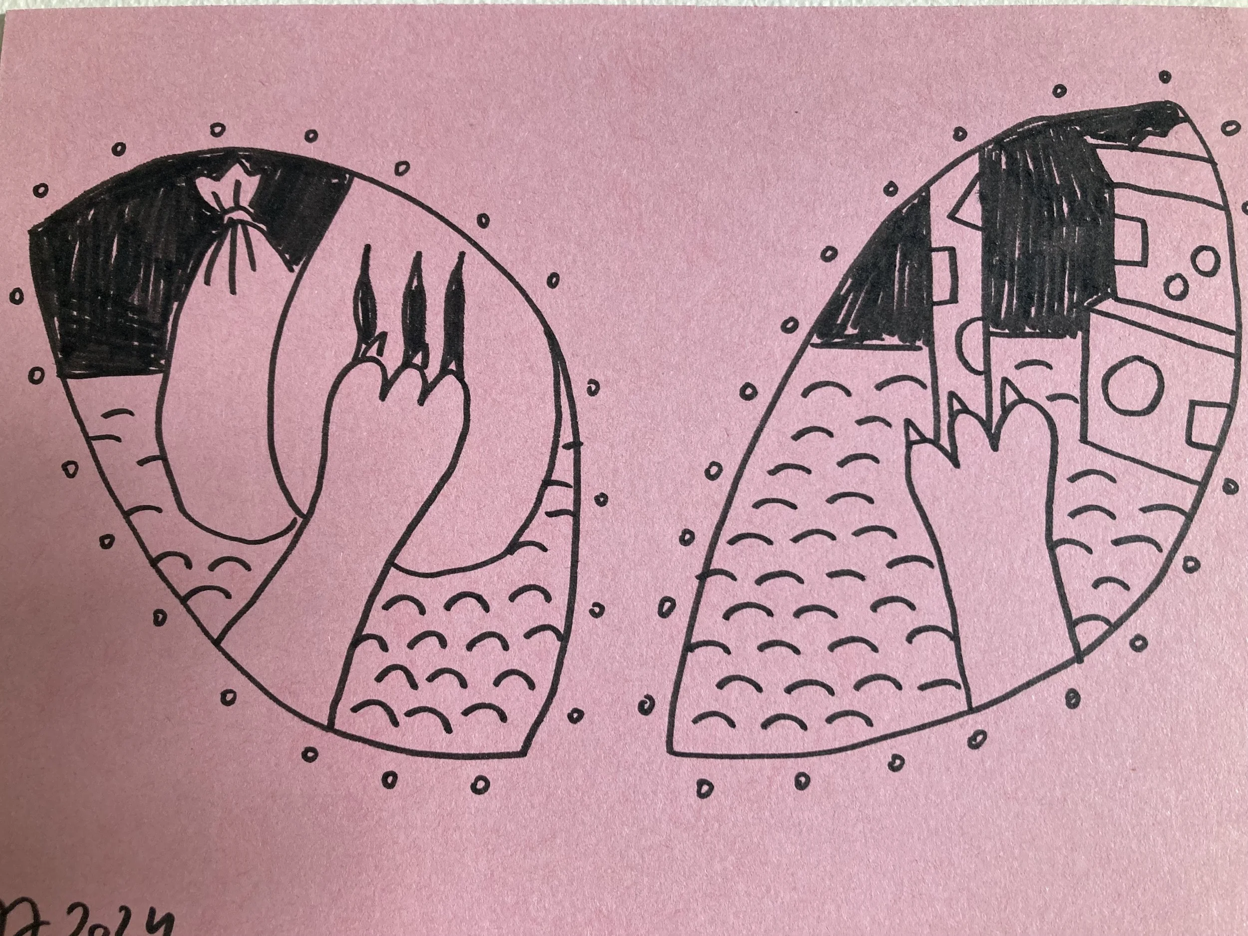Ik likte het raam. Beneden liepen twee vrouwen gearmd, een van hen droeg een jurk die opwaaide in de wind, terwijl ze kletsten gingen ze in elkaar op. Ze keken niet op of om. Het raam proefde bitter naar zeep, het voelde koel aan mijn tong. Een sliert met schoolkinderen kwam aangekropen, twee aan twee allemaal in het donkerblauw met witte boordjes. Twee juffen liepen in fluohesjes voorop, twee meesters liepen in het midden en twee juffen sloten de rij af. Het was net een lange slang met de hesjes van de leraren als oranje ringen. Al het verkeer en iedere voorbijganger stopte en wachtte tot de sliert veilig op de stoep was. Zo ging hij verder langs de huizen. Ik hoorde ze praten en lachen. Ze klonken als vogels. Ik probeerde hun stemmen te vangen in natte kusjes tegen het glas.